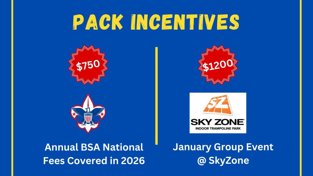 Pack 351 has routinely been a top seller for the annual Trails End Popcorn sale. This sale is our primary fundraiser to keep scouting affordable for all our families. We ask that all families participate to the best of their ability to help support the pack. It’s a team effort!